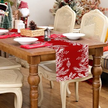 Christmas Floral Leaf Red Linen Table Runner for Holiday & Farmhouse Décor